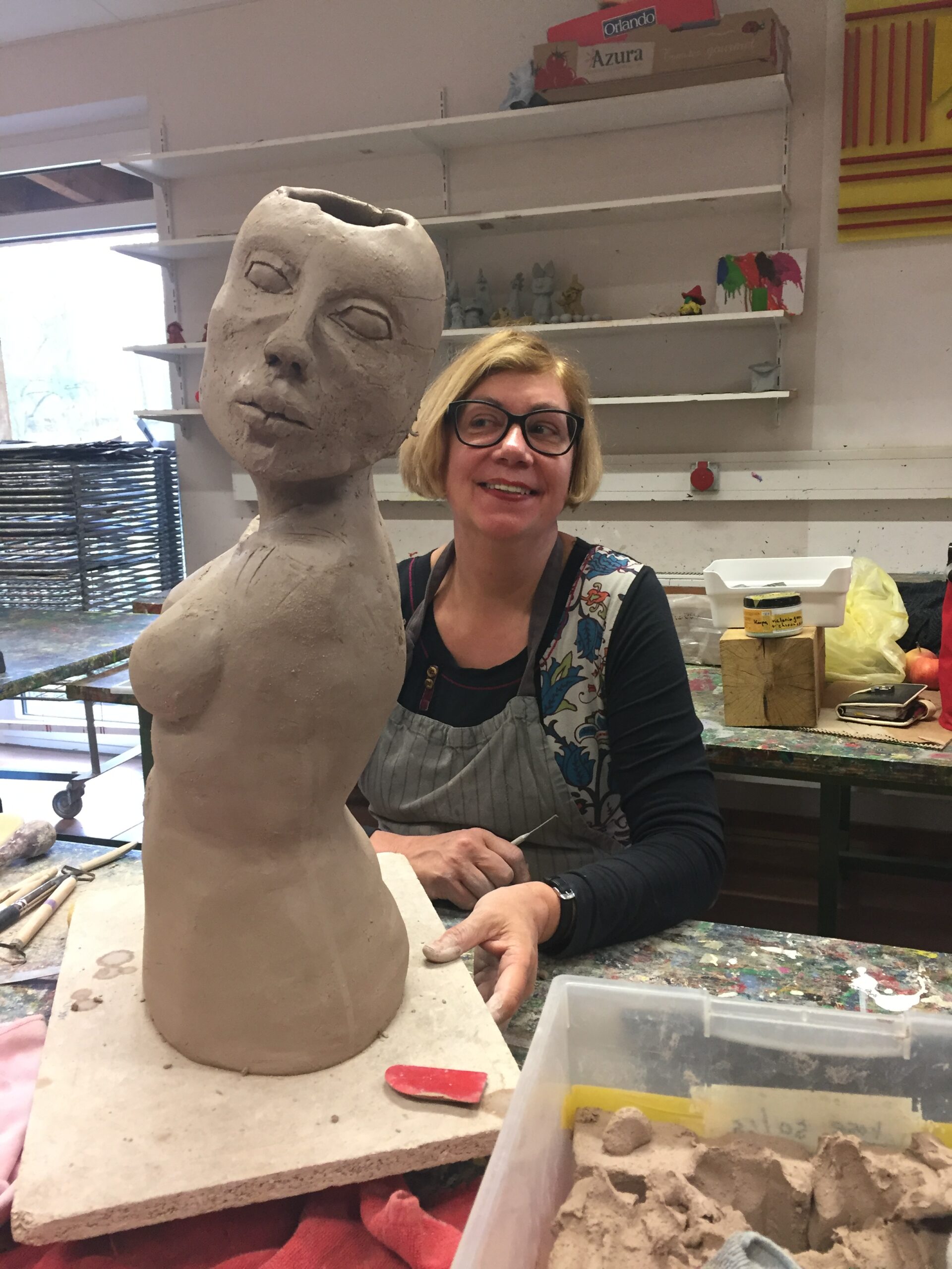 In this course we do not work in hollow construction, but full modeling, which includes the possibility and freedom to make changes until shortly before the end. Likewise, a color design with engobes to finish is possible.