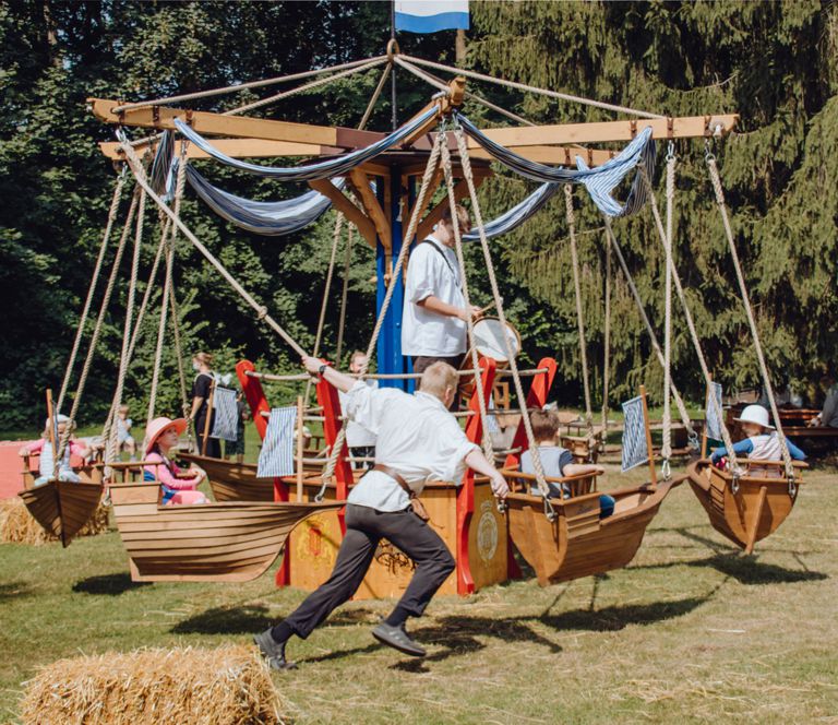 Ambachtslieden en handelaren van heinde en verre zullen tussen 11.00 en 18.00 uur naar de historische markt in de museumtuin reizen om ongewone goederen te verkopen en oude ambachtstechnieken te demonstreren. Het aanbod varieert van Romeins hout- en beenderwerk tot spinnen, weven en verven in de middeleeuwen, smeden, glazen kralen maken, handgemaakte knopen, zelfgemaakte marsepein en vissen uit de 18e eeuw, keramiek, bijenteelt, leer- en hoornbewerking tot relatief “moderne” jam en likeur. Alle kraamhouders zullen gekleed zijn in historische kostuums, waardoor een kleurrijk beeld ontstaat van de vele verschillende manieren die door de eeuwen heen zijn gedragen. Jongere bezoekers kunnen historische spellen uitproberen, schrijven met pen en inkt in de schrijfkamer of een ritje maken op een handbediende draaimolen in het Emspiraten-gedeelte van de Lingener Kivelinge. De band “Comes Vagantes” zorgt voor geweldige livemuziek, “The Arc Of Irish Dance” uit Haren is er met levendige dansen en kort voor het einde van de markt is er een fascinerende vuurshow. Gasten kunnen genieten van verfrissingen in de biertuin van de jeugdherberg en in het Koppelschleuse café.